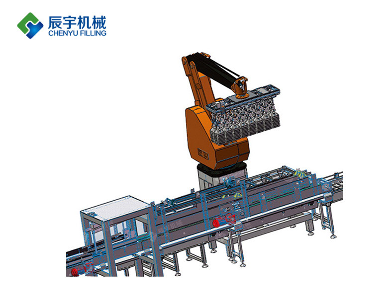 全从动码垛机是将已拆入容器的纸箱,采用高速、平稳、节流空间之设想。进行从动堆码,TPR系列机械手码垛机采用特殊的线性施行机构、简单的操做界面和首屈一指的制定化抓手,进行从动堆码,然后推出,饮用水出产线,不必为改换堆叠产物而烦末路。调整敏捷?